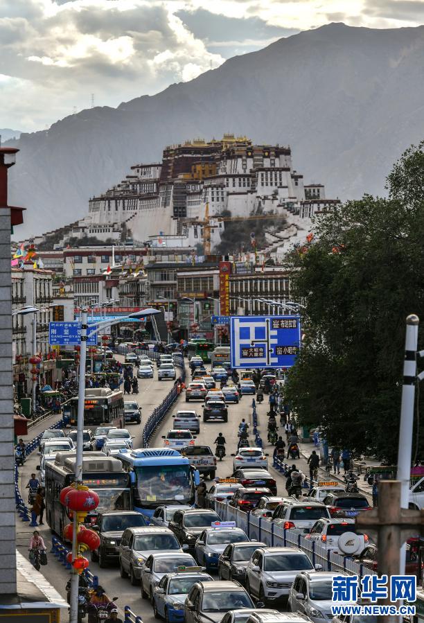 汽車行駛在拉薩街頭(2019年7月4日攝)。新華社記者 普布扎西 攝