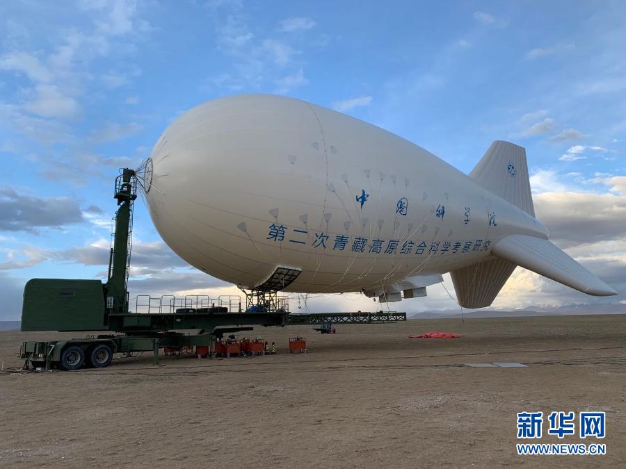 2019年5月30日在中科院青藏所納木錯(cuò)多圈層綜合觀測站的觀測營地拍攝的“極目一號(hào)”浮空器。新華社記者 田金文 攝