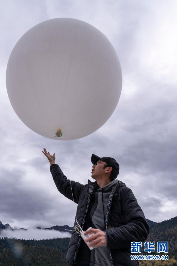 2019年10月21日,隨著探空氣球成功施放并進(jìn)入萬米高空收集大氣垂直數(shù)據(jù),第二次青藏科考“地氣相互作用及其氣候效應(yīng)”觀測試驗(yàn)第三階段在西藏林芝啟動(dòng)。新華社記者 孫非 攝
