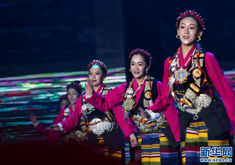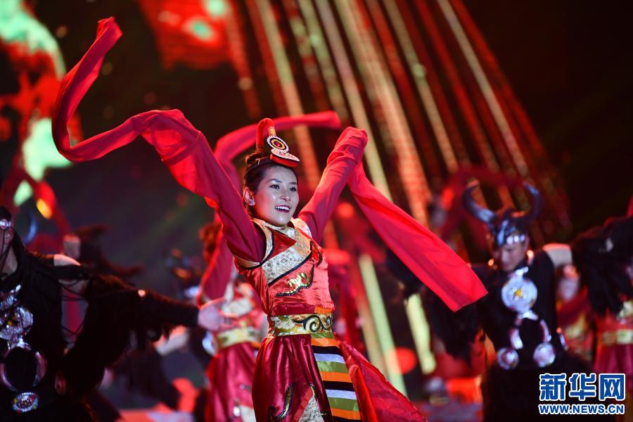 1月11日,演員在聯(lián)歡晚會上表演。新華社記者 晉美多吉 攝