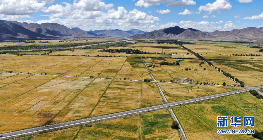 俯瞰西藏日喀則市白朗縣的農田(2019年8月31日攝,無人機照片)。新華社記者 晉美多吉 攝