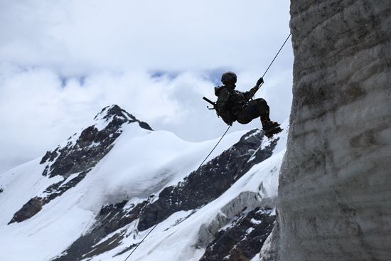 “偵察兵是‘雪域鷹眼’,就要‘上天、遁地、下水、入夜’,無(wú)所不能,無(wú)所不練!”馬乾笑著說(shuō),這是自己練兵的“八字真訣”。