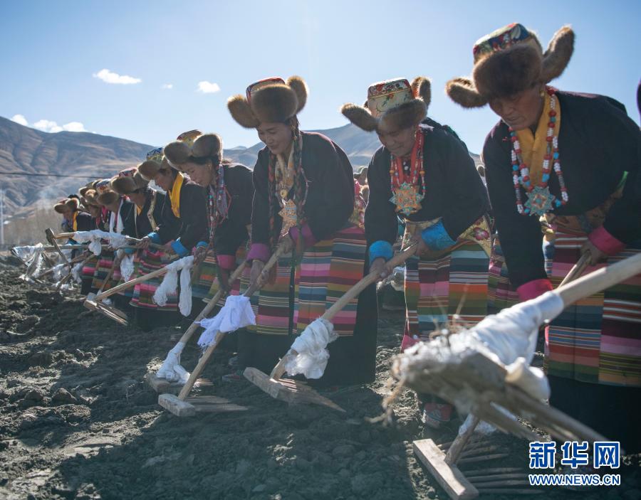 3月16日,克松社區(qū)居民在參加春耕儀式。新華社記者 普布扎西 攝