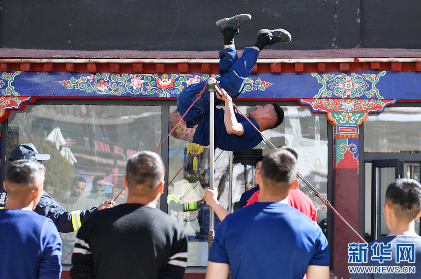 布達(dá)拉宮消防救援大隊隊員進(jìn)行例行體能測試(3月4日攝)。新華社記者 孫瑞博 攝