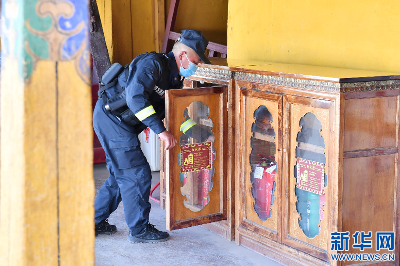 布達(dá)拉宮消防救援大隊隊員在巡邏期間檢查消防設(shè)施(3月4日攝)。新華社記者 孫瑞博 攝