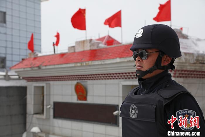 連日來,執(zhí)勤隊(duì)像往常一樣開展巡邏。民警楊帆是此次乃堆拉執(zhí)勤任務(wù)的帶隊(duì)干部,組織民警開展巡邏是他每天必須完成的任務(wù)。大家穿戴好單警裝備,楊帆格外對新警阿旺邊巴叮囑高原巡邏注意事項(xiàng)。
