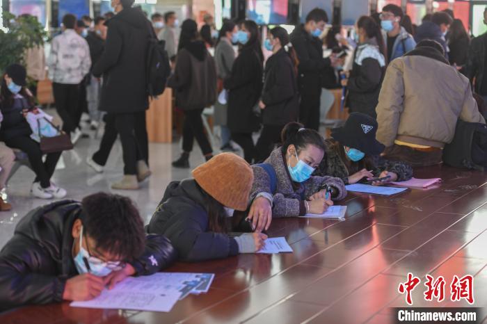 求職者在招聘會(huì)上填寫個(gè)人信息。貢嘎來松 攝