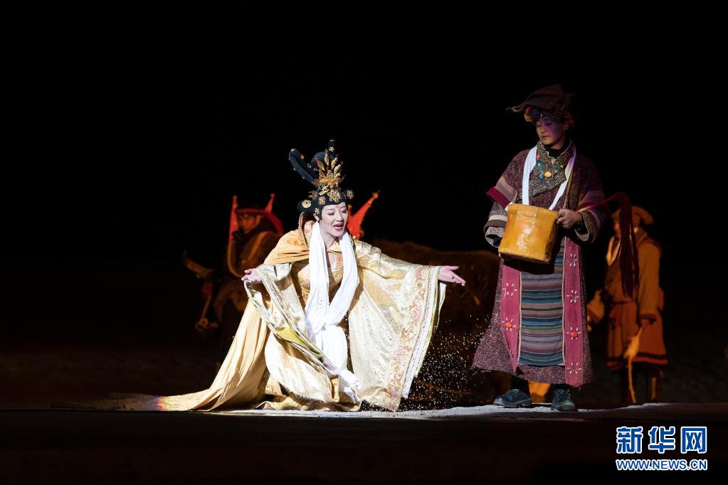 4月10日,演員在大型實(shí)景劇《文成公主》中表演。新華社 孫瑞博 攝