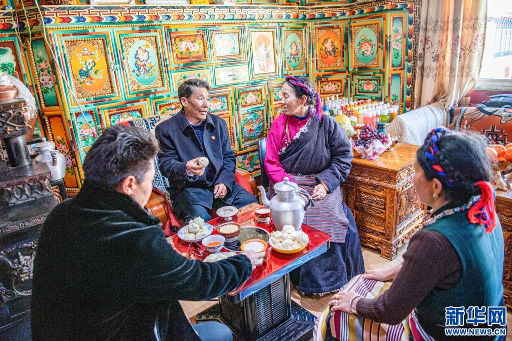 洛松朗加(左二)和家人一起吃飯(2月19日攝)。新華社記者 孫非 攝