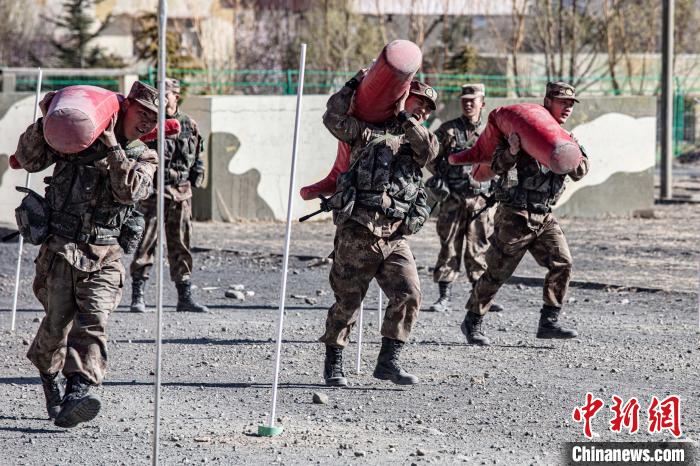 圖為西藏軍區(qū)某旅新兵進行圓木負重訓(xùn)練。西藏軍區(qū)某旅 攝