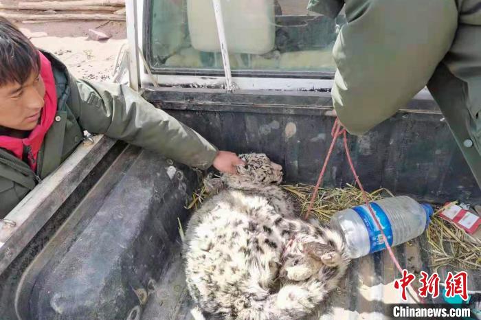 西藏阿里改則縣對(duì)該雪豹進(jìn)行救助、喂養(yǎng),待其擁有捕獵能力后再放歸。西藏改則縣林業(yè)和草原局 供圖
