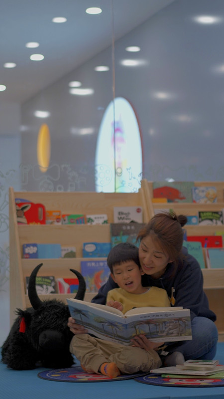 圖為在“金寶貝拉薩中心”,年輕的媽媽仁增旺沫正在陪兒子閱讀繪本。