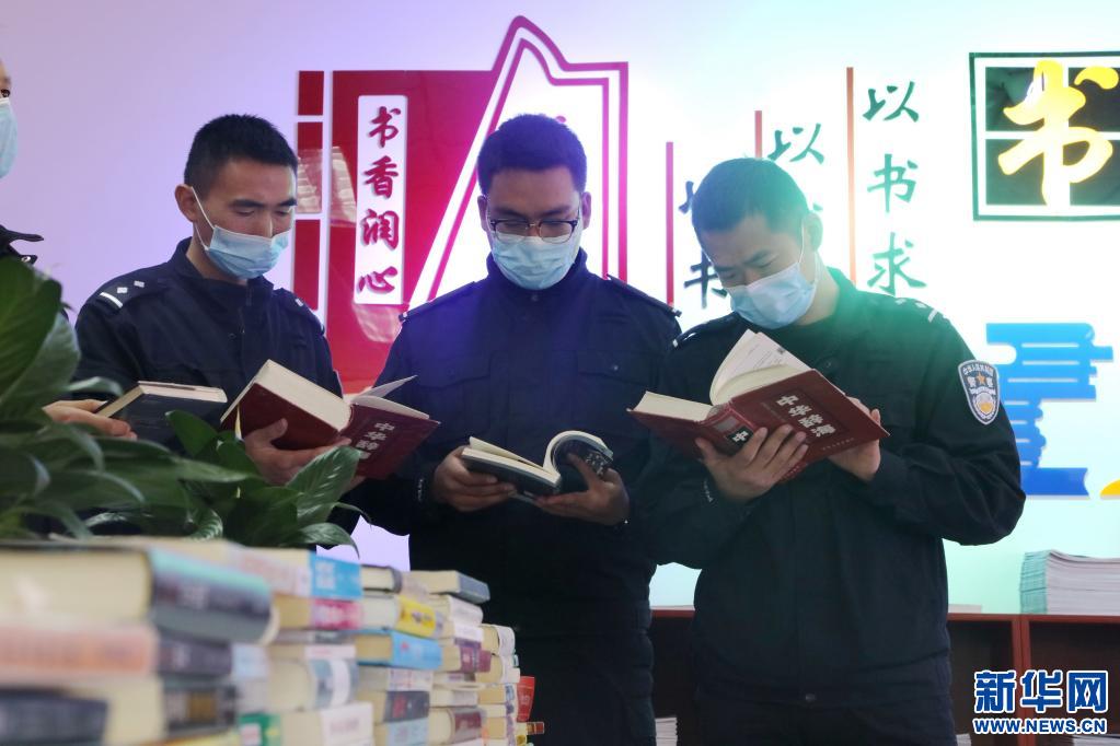 亞東出入境邊防檢查站民警在圖書室借閱書籍。(張雨強攝,新華社發(fā))