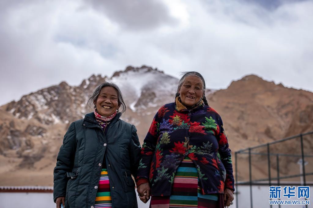 才旦拉姆老人(右)和妹妹在一起(4月27日攝)。新華社 貢覺(jué)群培 攝