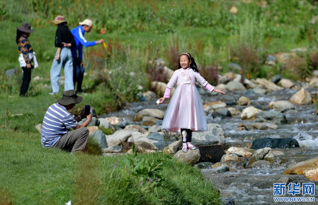 游人在達東村景區(qū)小溪邊玩耍(2019年7月20日攝)。新華社記者 張汝峰 攝
