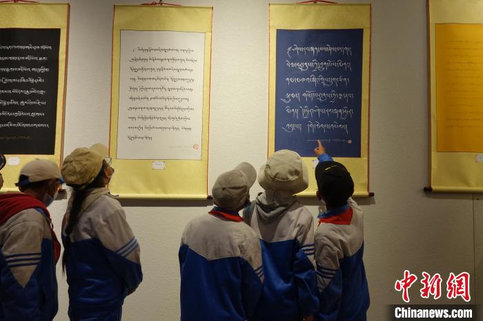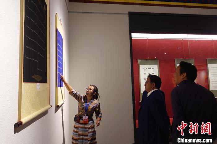 5月18日,觀眾參觀山南市博物館“埃赤派”藏文書法展。冉文娟 攝