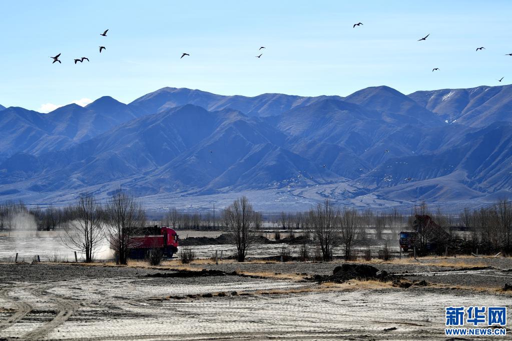 日喀則市桑珠孜區(qū)那塘村,高標(biāo)準(zhǔn)農(nóng)田項(xiàng)目施工現(xiàn)場(chǎng)(2020年3月1日) 新華社記者張汝鋒 攝