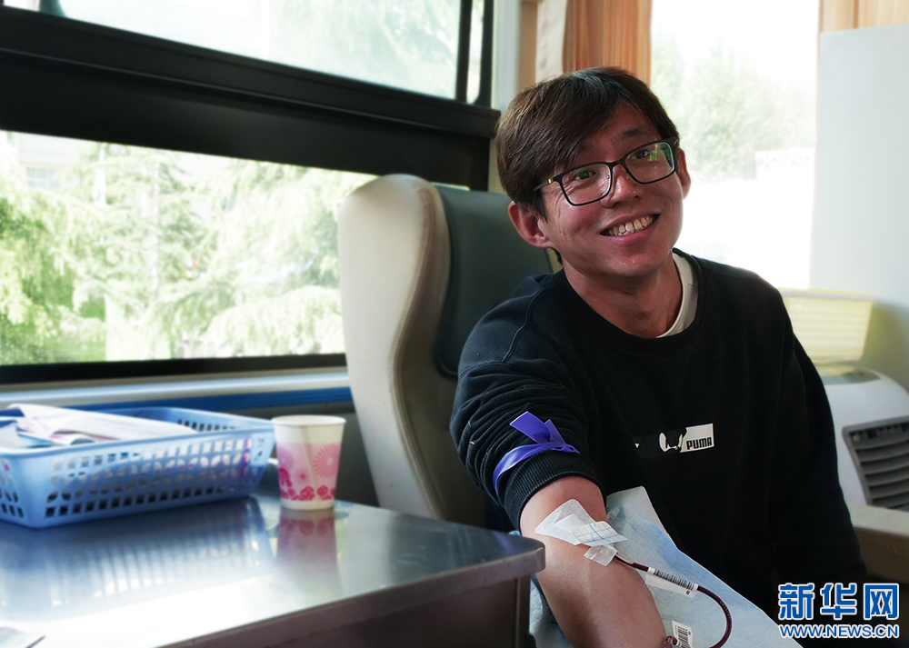 5月27日,來自北京大學人民醫(yī)院的援藏干部朱志峰在獻血。(新華網 旦增努布攝)