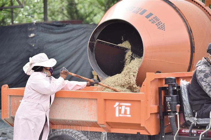 工作人員對種子進(jìn)行飛播前加工。