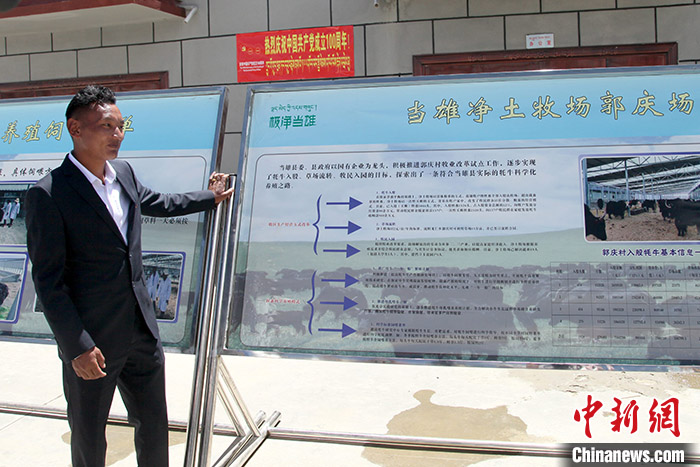圖為6月2日,凈土牧場郭慶場負責人阿旺多布杰向記者介紹相關(guān)情況。中新社記者 陳小愿 攝