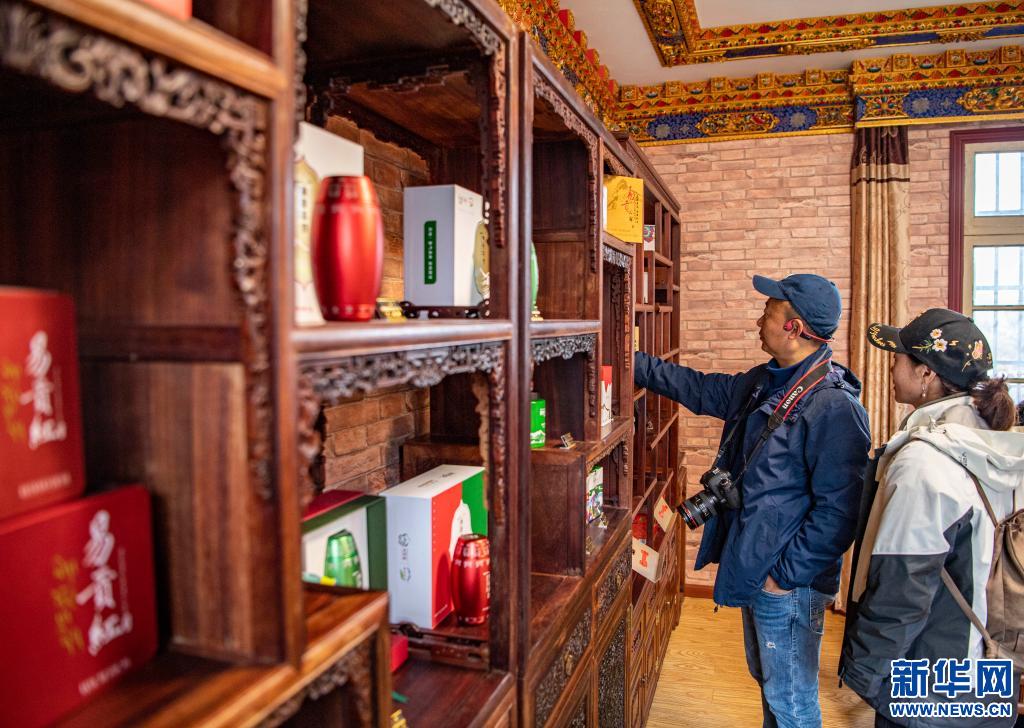 拉薩市北京路,崗堅茶葉股份有限公司門店內(nèi),一些造型獨特、包裝各異的茶葉產(chǎn)品吸引著顧客。
