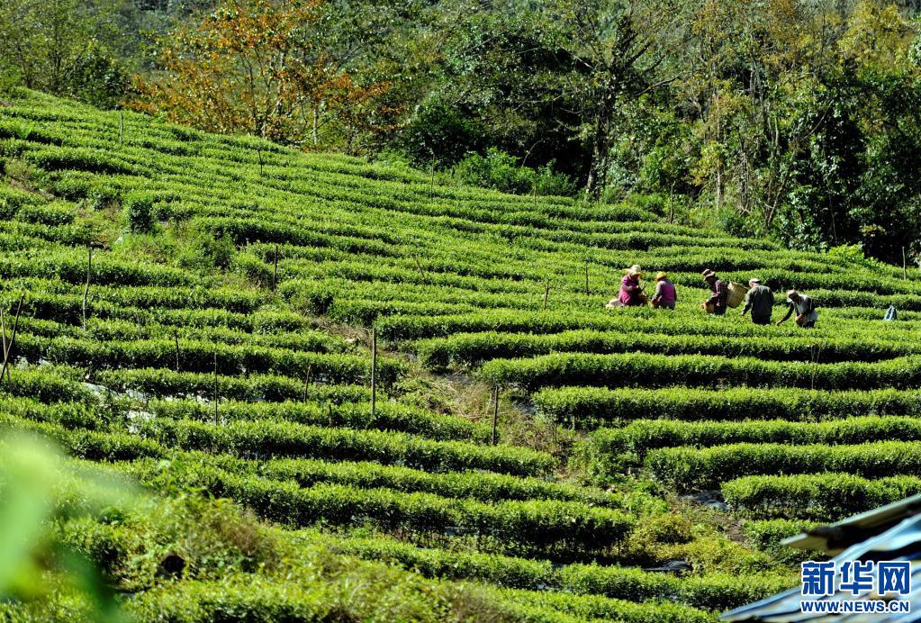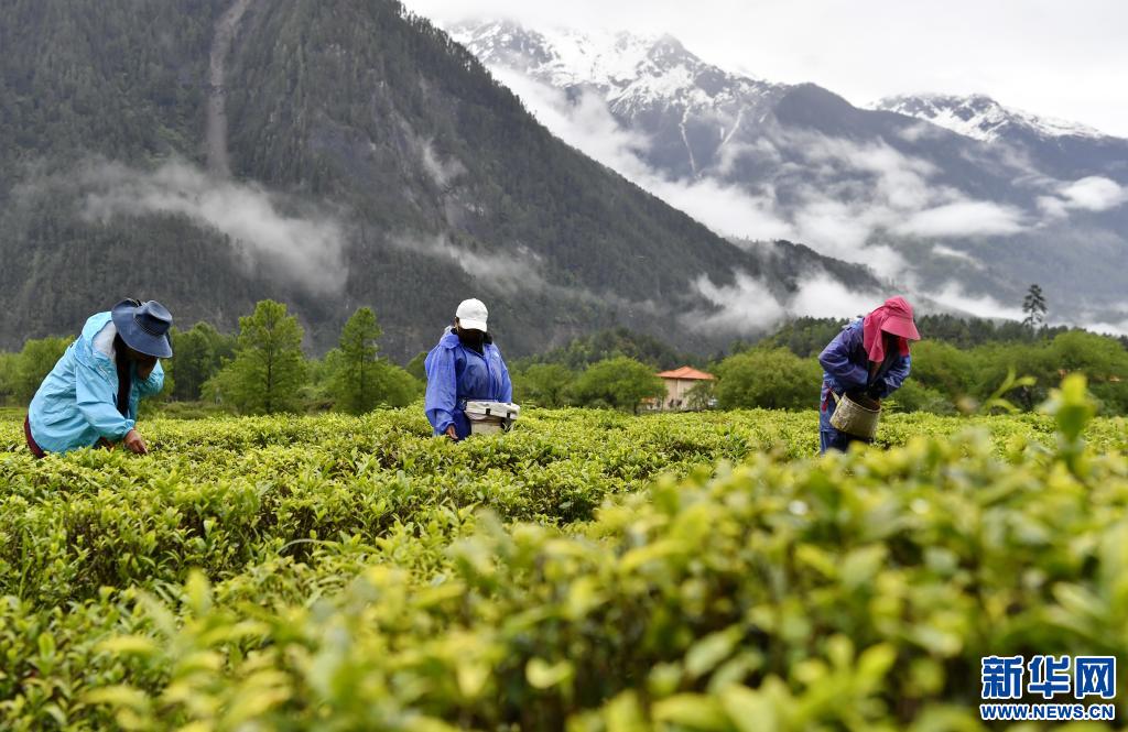西藏易貢茶場工人在采摘茶葉(5月22日攝)。新華社記者 張汝鋒 攝