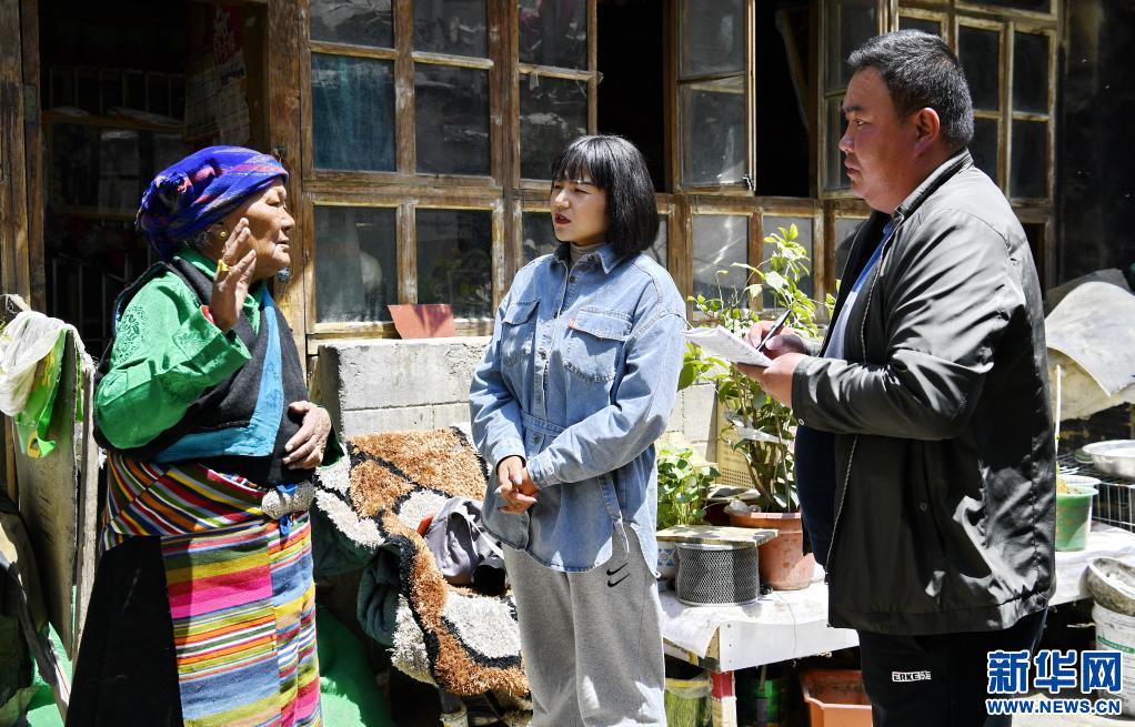 央窮和來家里走訪的工作人員交流(4月30日攝)。新華社記者 張汝鋒 攝