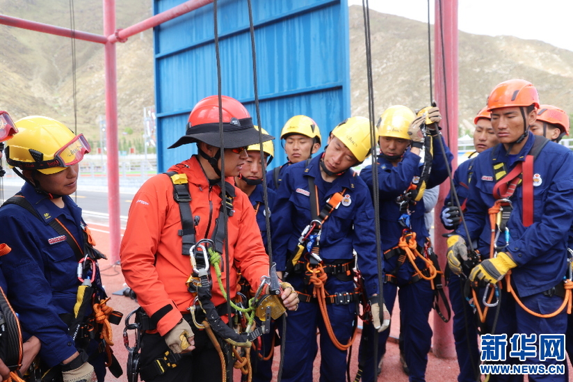 教練在為隊員們進行繩索救援授課(6月8日攝) 。(新華網發(fā) 劉論剛攝)