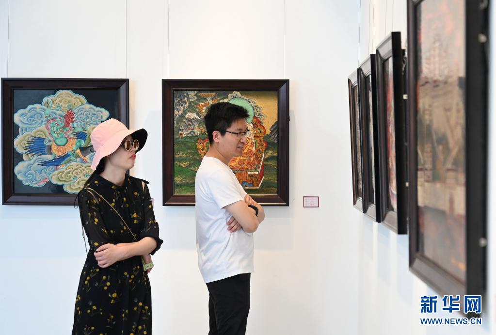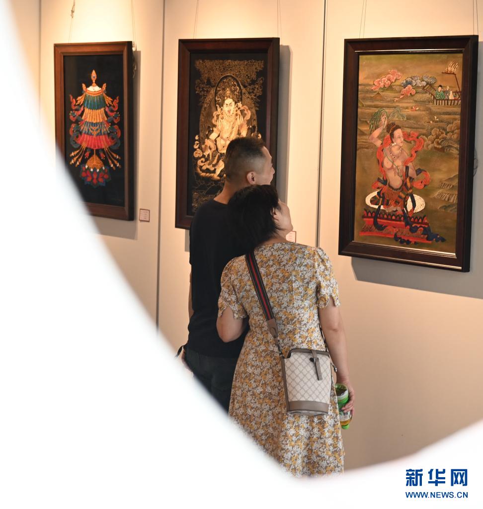 6月12日,市民在福州三坊七巷參觀唐卡漆畫。新華社記者 林善傳 攝
