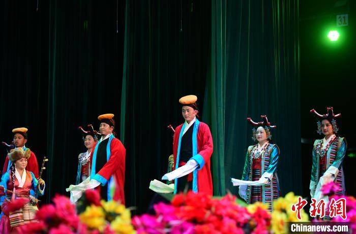圖為拉薩市城關區(qū)娘熱民間藝術團帶來的歌舞《拉薩囊瑪》 貢嘎來松 攝