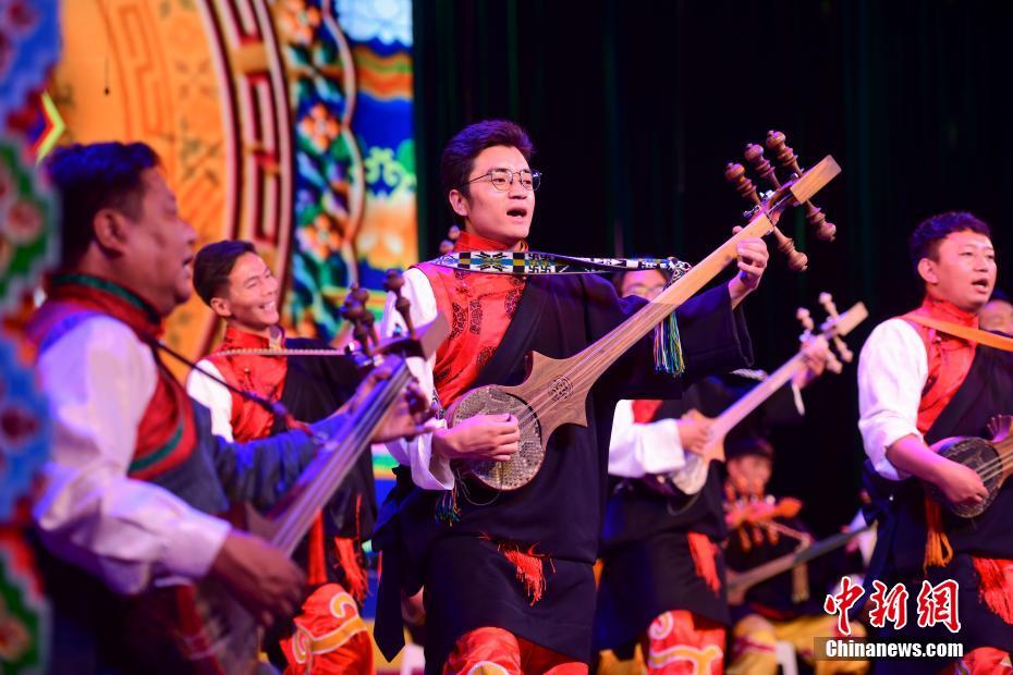 6月12日,2021年“文化和自然遺產(chǎn)日”西藏非遺展演展示系列活動在拉薩舉行?;顒蝇F(xiàn)場融入了文藝演出、非遺展演、非遺產(chǎn)品展銷等內(nèi)容,市民游客可親身體驗非遺產(chǎn)品的制作過程。圖為在西藏自治區(qū)群眾藝術(shù)館演出的扎念彈唱《普伊桑林貢巴》。 中新社記者 貢嘎來松 攝