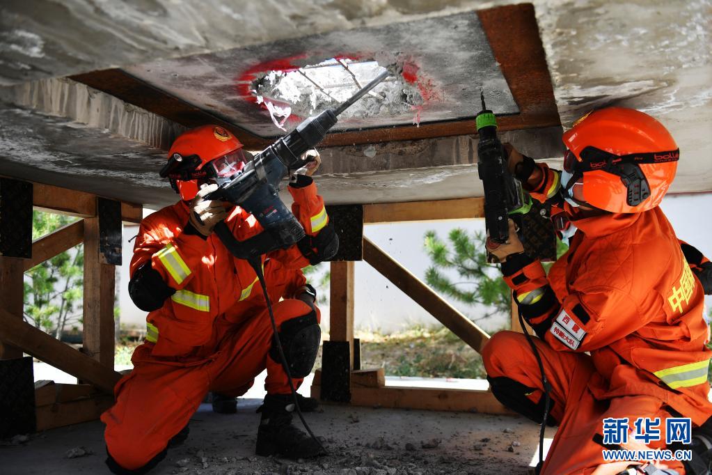 6月15日,參訓(xùn)學(xué)員進行矩形間接安全破拆實際操作展示。新華社記者 孫瑞博 攝