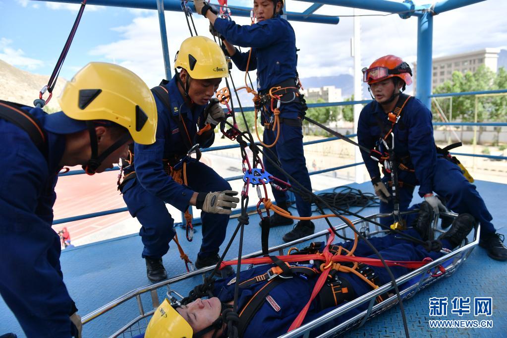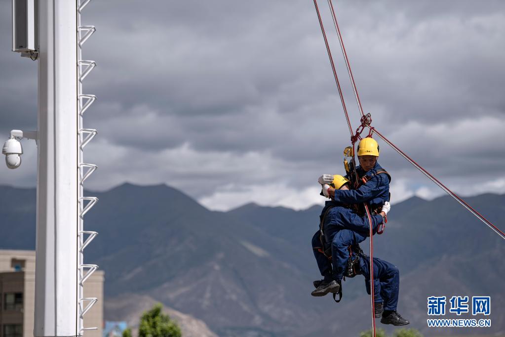 6月15日,參訓(xùn)學(xué)員進行鐵塔救援系統(tǒng)實際操作展示。新華社記者 孫瑞博 攝