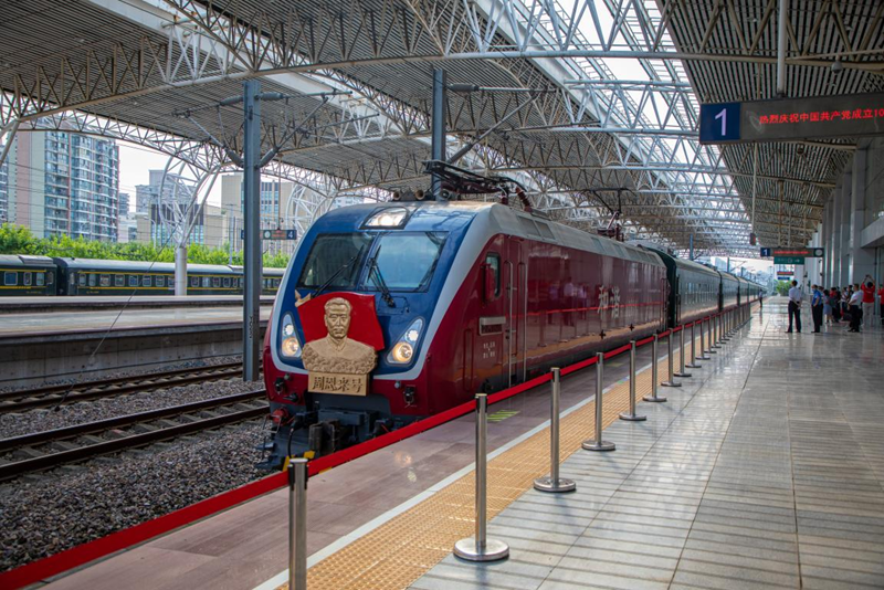 6月25日上午,上海至嘉興的“南湖·1921”紅色旅游列車正式開通。上午8時,身著藏裝的西藏自治區(qū)那曲市色尼區(qū)代表團乘上列車前往嘉興。