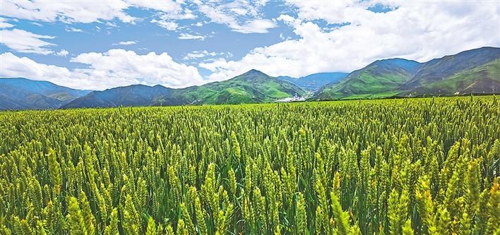 圖為西藏自治區(qū)拉薩市達(dá)孜區(qū)境內(nèi)長勢(shì)喜人的冬小麥。記者 裴聰 格桑倫珠 攝