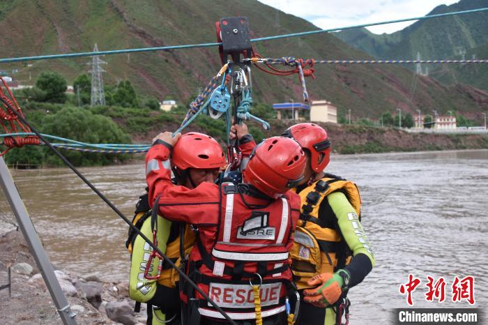 圖為山洪災害防汛演練中進行翻舟自救科目。昌都市森林消防支隊 攝