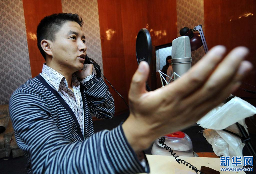 西藏電視臺藏語配音員在給電視劇配音(2009年9月29日)。新華社記者 覺果 攝