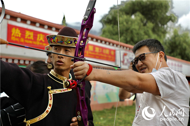 記者現(xiàn)場(chǎng)體驗(yàn)響箭。人民網(wǎng) 次仁羅布攝