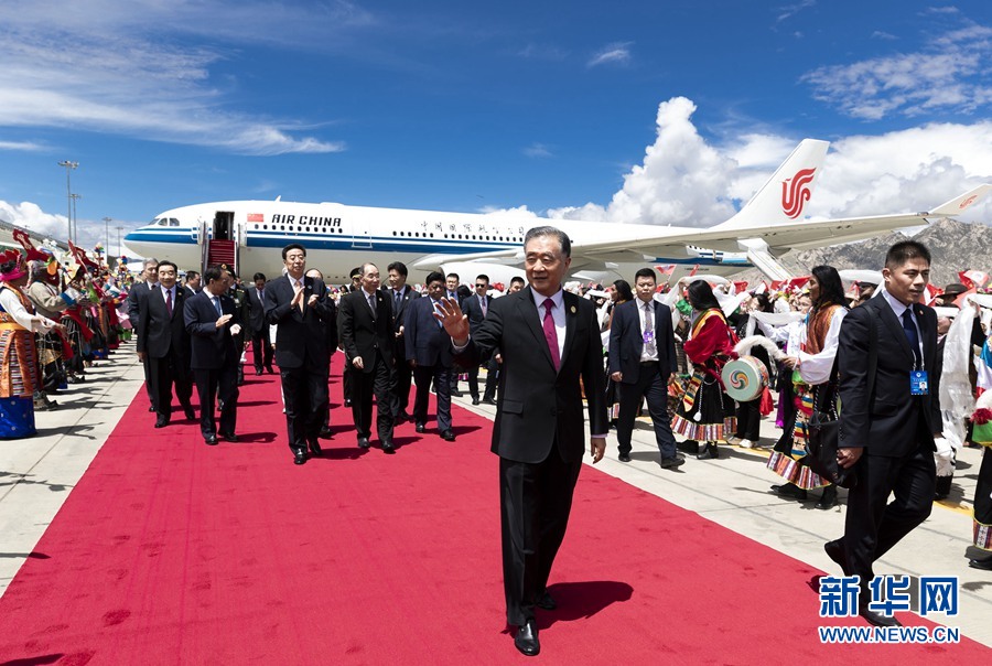 汪洋率中央代表團(tuán)飛抵拉薩出席西藏和平解放70周年慶?;顒?dòng)