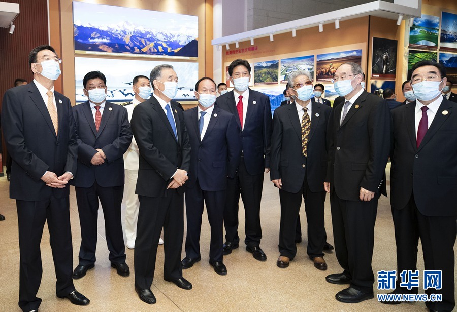 汪洋等走進(jìn)展廳,一邊仔細(xì)觀看展板,一邊認(rèn)真聽(tīng)取講解?!妒邨l協(xié)議》簽字儀式歷史照片、實(shí)行民族區(qū)域自治制度的展板、對(duì)口援藏資金圖表、《西藏自治區(qū)民族團(tuán)結(jié)進(jìn)步模范區(qū)創(chuàng)建條例》圖片……一塊塊展板、一張張圖片圖表,生動(dòng)展現(xiàn)了70年來(lái)西藏在黨的領(lǐng)導(dǎo)下取得的長(zhǎng)足發(fā)展。汪洋不時(shí)駐足觀看,詳細(xì)詢(xún)問(wèn)有關(guān)情況,對(duì)西藏近年來(lái)各項(xiàng)事業(yè)取得的成就予以充分肯定。