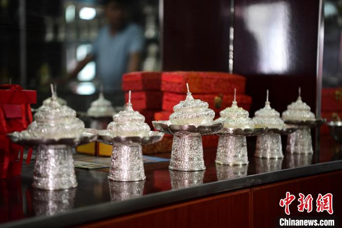 圖為銀制茶架。貢嘎來松 攝