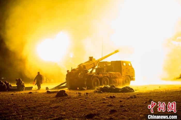車載榴彈炮分隊(duì)夜間射擊。路建 攝