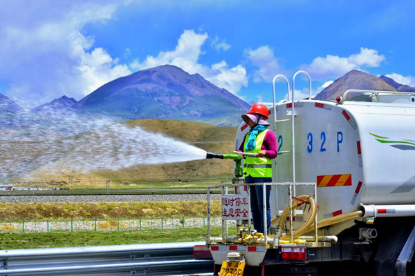 在惡劣條件下,是如何打造的?中國中鐵那羊高速四分部項目經(jīng)理陳永豐介紹:“都是在草甸恢復(fù)基礎(chǔ)上進行的。剝離的草甸堆放在沿線,覆以遮陽網(wǎng),定時澆水養(yǎng)護。路基建好后,將其復(fù)植至邊坡等地。打好基礎(chǔ)后,選用了更適應(yīng)高原環(huán)境的鄉(xiāng)土草(花)種?!?/p>