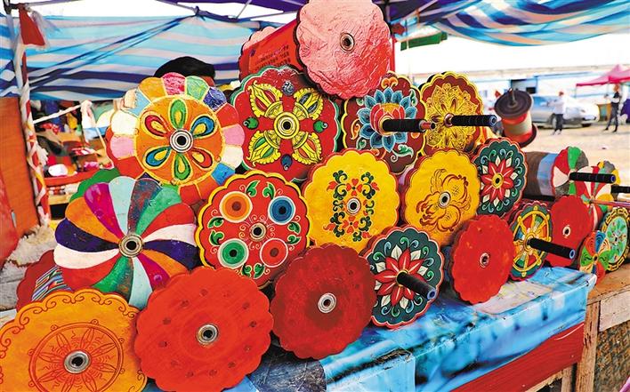 圖為制作精美的藏式風(fēng)箏線(xiàn)軸。