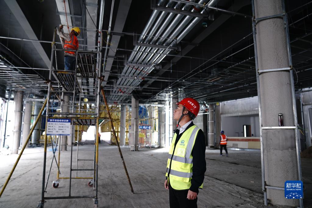 張磊正在查看項(xiàng)目室內(nèi)施工現(xiàn)場(2021年9月18日攝)。新華社記者 劉洪明 攝