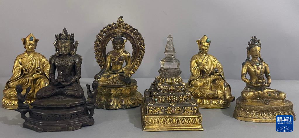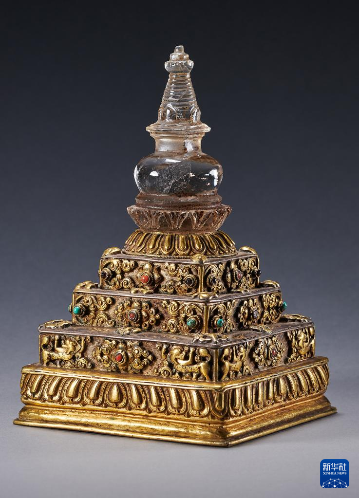 銅鎏金水晶嵌寶石供養(yǎng)塔(資料照片)。記者從9月26日召開的全國(guó)文物援藏工作電視電話會(huì)議上獲悉,國(guó)家文物局將從美國(guó)成功追索回國(guó)的12件文物藝術(shù)品整體劃撥西藏博物館。新華社發(fā)