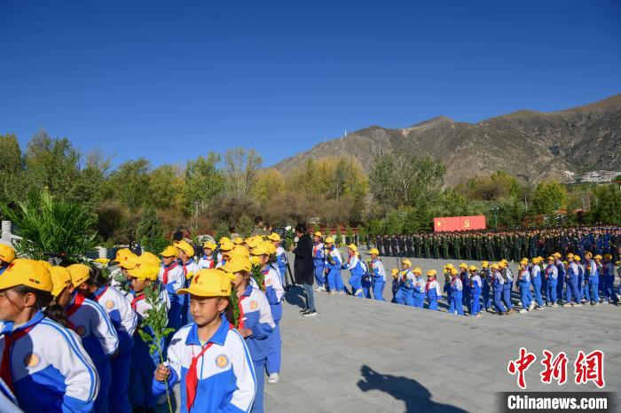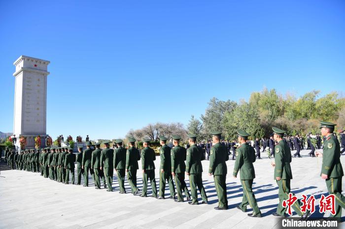 秋日的拉薩碧空如洗,松柏環(huán)繞的拉薩烈士陵園莊嚴(yán)肅穆,藍(lán)天映襯下烈士紀(jì)念碑巍峨聳立。9時(shí)30分,西藏自治區(qū)領(lǐng)導(dǎo)和各族各界群眾代表齊聲高唱《中華人民共和國(guó)國(guó)歌》。隨后,全場(chǎng)肅立,向烈士默哀。