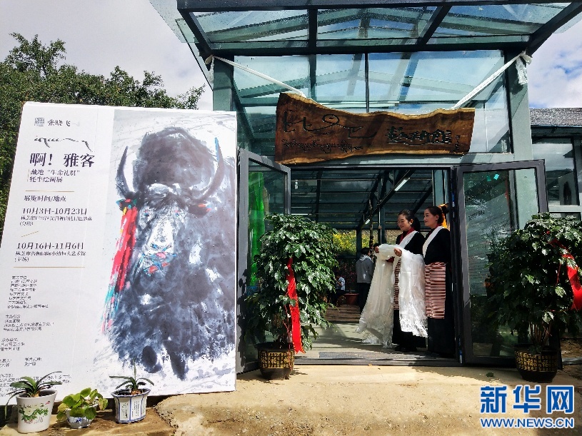 10月3日,在拉丁嘎村鄉(xiāng)村藝術館開幕的牦牛繪畫展。(受訪者供圖)