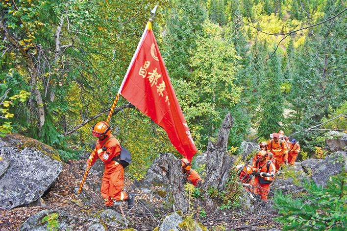 昌都市森林消防支隊在林區(qū)巡護(hù)。記者 楊小娟 攝