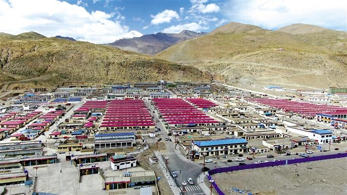 在這座現(xiàn)代化的小區(qū)里,一排排黃色的藏式民居整齊劃一,迎風(fēng)招展的五星紅旗格外醒目,小區(qū)周邊學(xué)校、醫(yī)院、農(nóng)貿(mào)市場等配套設(shè)施一應(yīng)俱全。沐浴著和煦的陽光,孩子們在巷子里奔跑嬉鬧,老人們圍攏在一起拉家常。